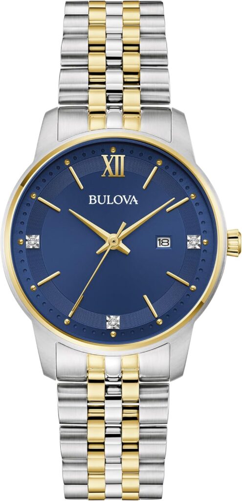 The Bulova Ladies Classic 98P233 excels as a stylish, dependable, and elegant women’s watch. With its beautiful blue dial, authentic diamond accents, and classic two-tone design, it’s an excellent choice for anyone seeking a dressy yet practical timepiece. Whether as a gift or a personal wardrobe staple, this model represents quality and enduring style.